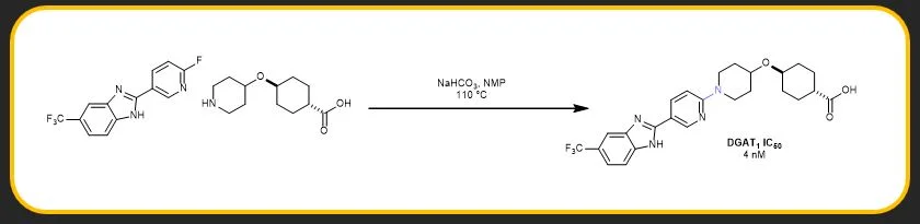 Jian Liu, James M. Balkovec, Arto D. Krikorian, Deodial Guiadeen, Ginger Yang, Tianying Jian, Zhicai Wu, Yang Yu, Ravi P. Nargund, Petr Vachal, Robert J. DeVita, Shuwen He, Zhong Lai, Radhika M. Blevis-Bal, Timothy A. Cernak, Donald M. Sperbeck, Qingmei Hong. “Preparation of imidazopyridinzylphenylpyridinylpiperidinylacetic acid derivatives and analogs for use as DGAT1 inhibitors”. PCT International Application 2012, WO2012096813.
